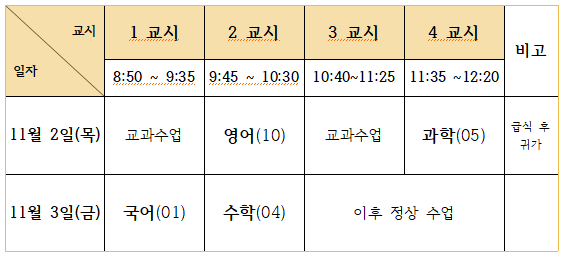학교 사정으로 2023학년도 3학년 2학기 2차 지필평가의 시간표가 수정되었습니다.